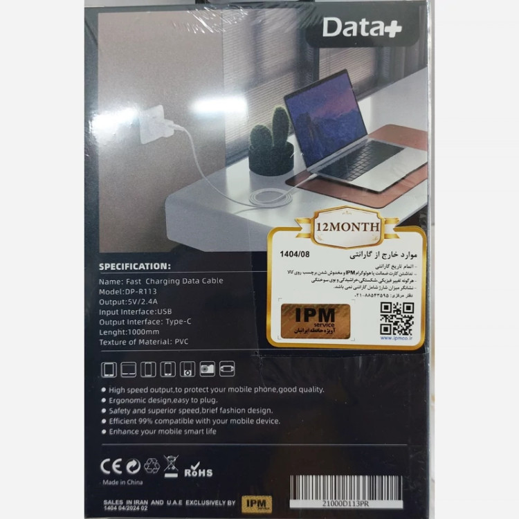 کابل تایپ سی گارانتی دار شرکتی تمام مس کیفیت اورجینال شرکت ipm