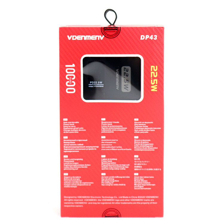 مشخصات فنی: پورتهای خروجی: USB-A (پشتیبانی از QC 3.0) USB-C (پشتیبانی از PD) ولتاژ و جریان ورودی: USB-C: 5V/3A، 9V/2A ولتاژ و جریان خروجی: USB-A: 5V/4.5A، 9V/2A، 12V/1.5A USB-C: 5V/3A، 9V/2.2A، 12V/1.67A