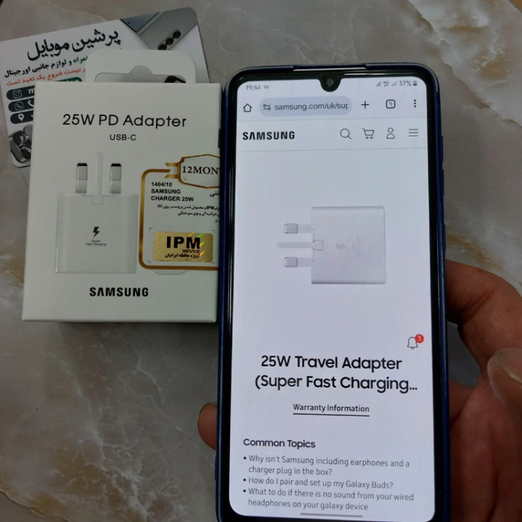 شارژر 25 وات سامسونگ اورجینال 25wبا شارژ فوق سریع 25W pd مناسب سری Aو S با گارانتی 12 ماه شرکتی قابل استعلام