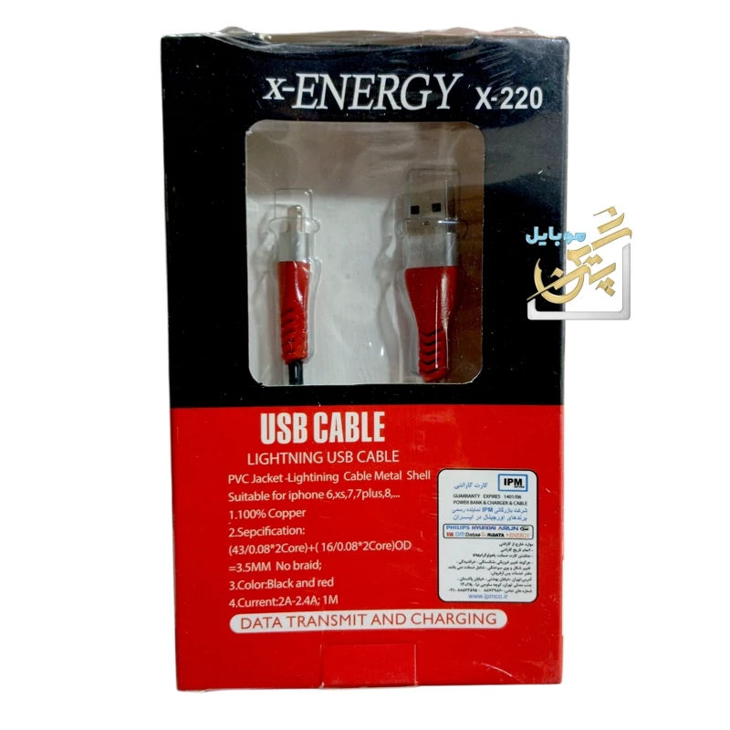 کابل شارژ ایفون شرکت X-EnergyIPM مدل X-220 مناسب برای شارژ گوشی ایفون 6 ایفون 7 ایفون 8 ایفون 5