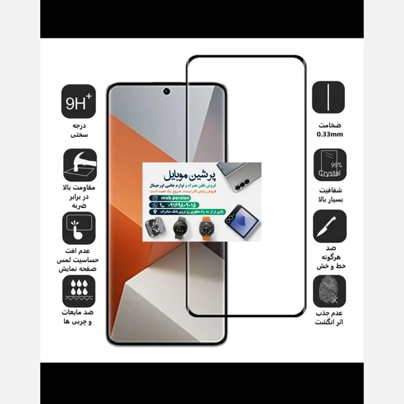 گلس شیائومی not 13 pro plus- each فول تمام صفحه نوت سیزده پرو پلاس خم دارای کد استاندارد