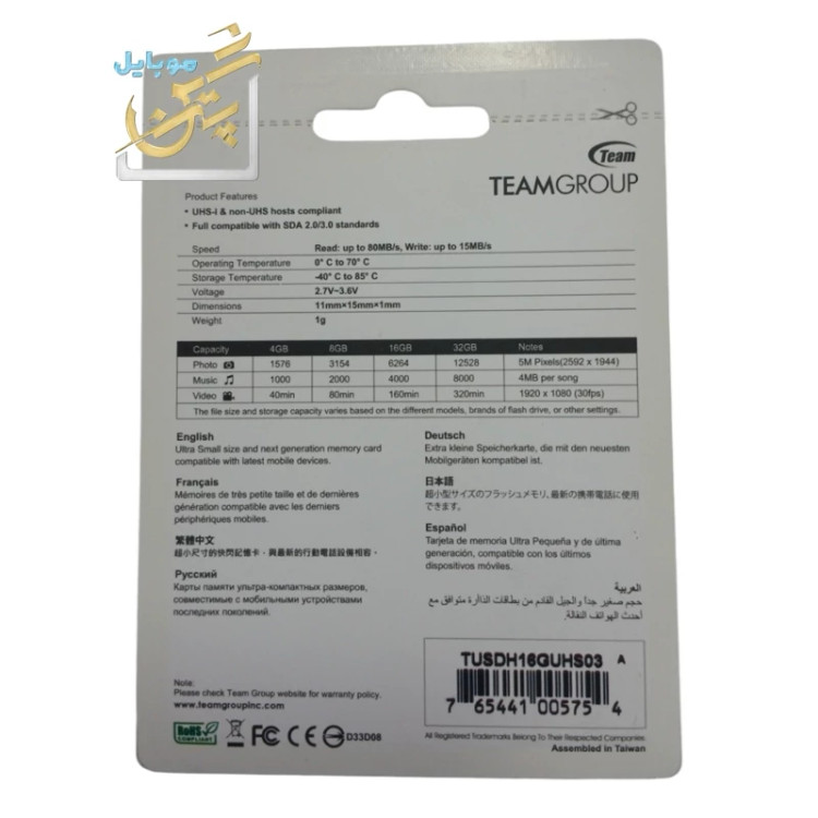 رم 16gb گیگ micro sd برند team group مدل class 1o با گارانتی مادام العمر