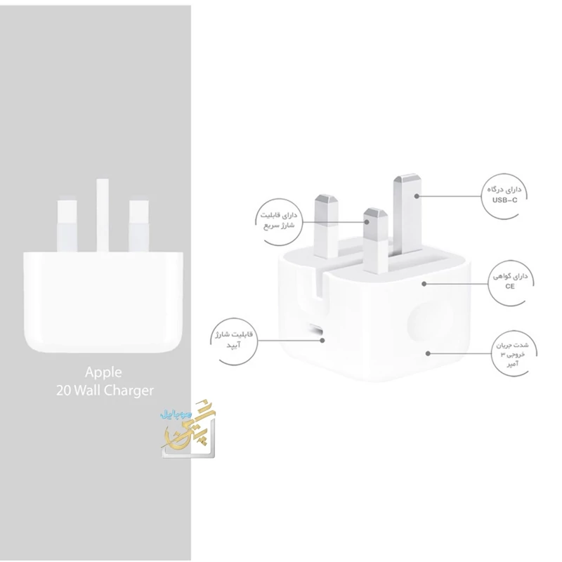 شارژر دیواری 20 وات اپل مناسب آیفون مدل B/A دارای خروجی تایپ سی Type-C