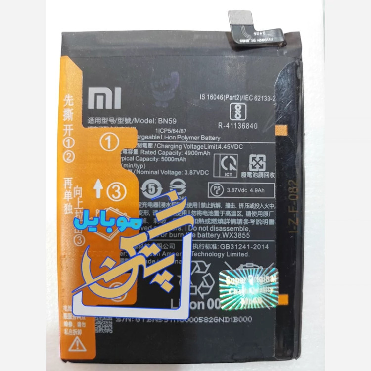 باتری شیائومی Redmi Note 10 bn59 BN59 با ظرفیت 5000 میلی آمپر ساعت اورجینال 100 درصد