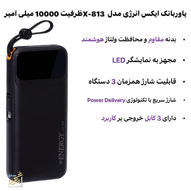 پاوربانک 22.5 وات پاور بانک ایکس انرژی مدل X-813 با شارژ سریع ظرفیت 10000 ده هزار میلی آمپر ساعت